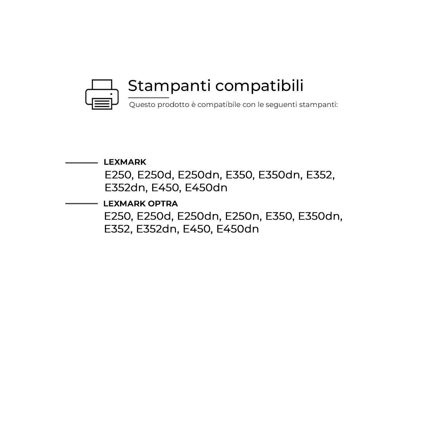 Scegli Alphaink, azienda leader nella vendita online di toner compatibili, e porta la qualità professionale nel tuo ufficio con il toner compatibile per LEXMARK E250A11E.