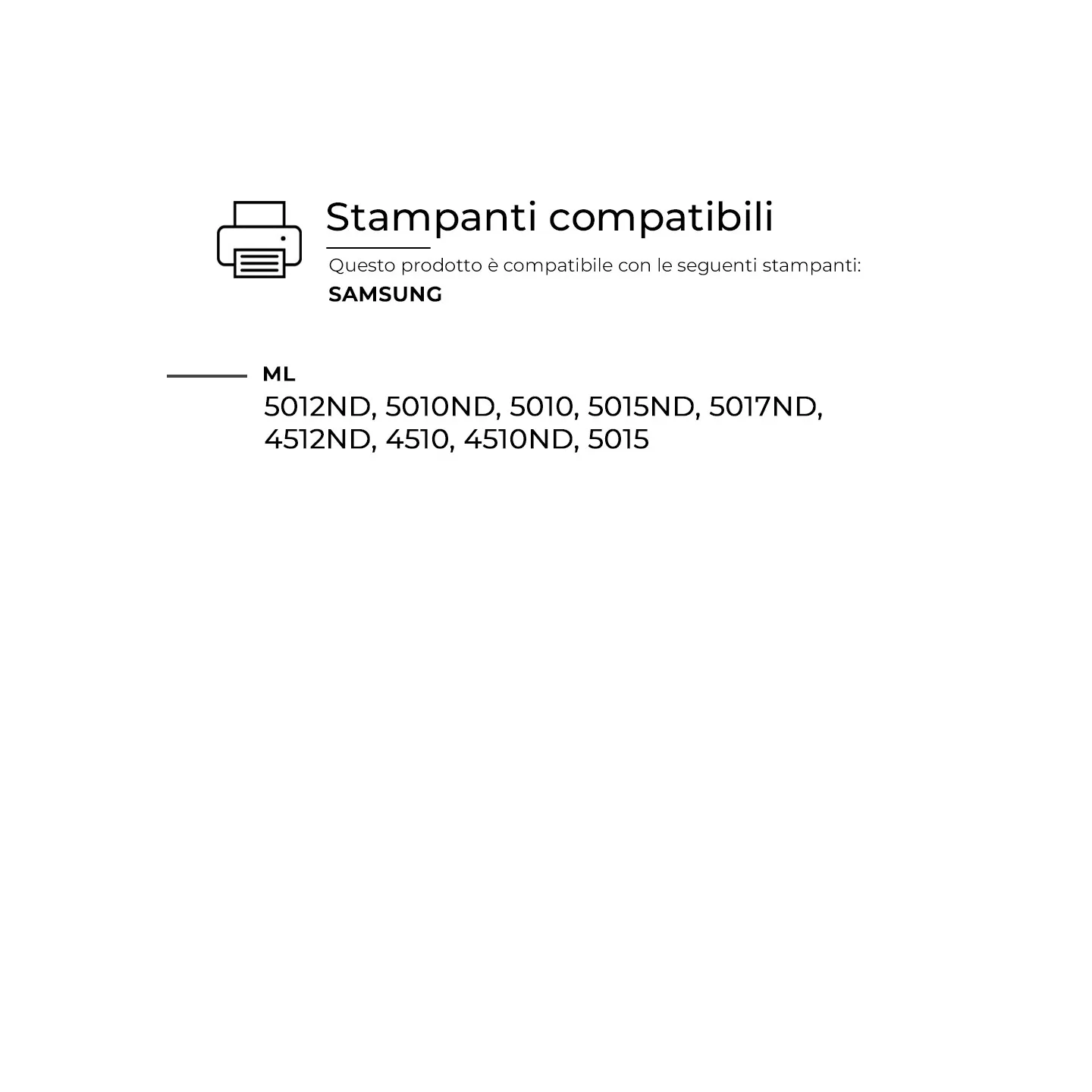 Questo Toner per Samsung è pienamente compatibile con molteplici modelli di stampanti SAMSUNG e assicura una resa di stampa elevata e costante, paragonabile a quella dei prodotti originali. Progettato per offrire affidabilità e precisione.